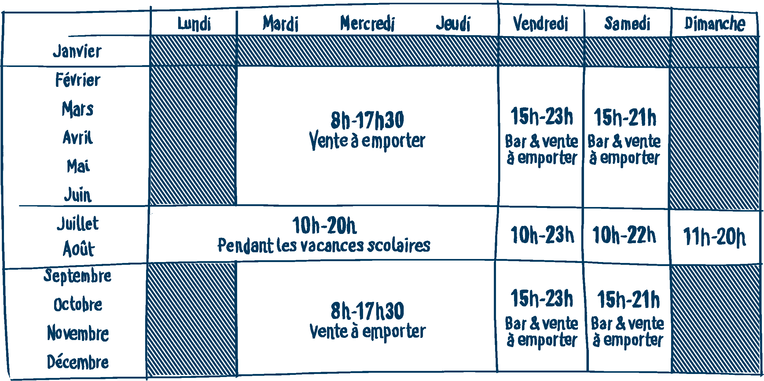 Vous trouverez notre sélection de bières, ainsi que des douceurs locales.